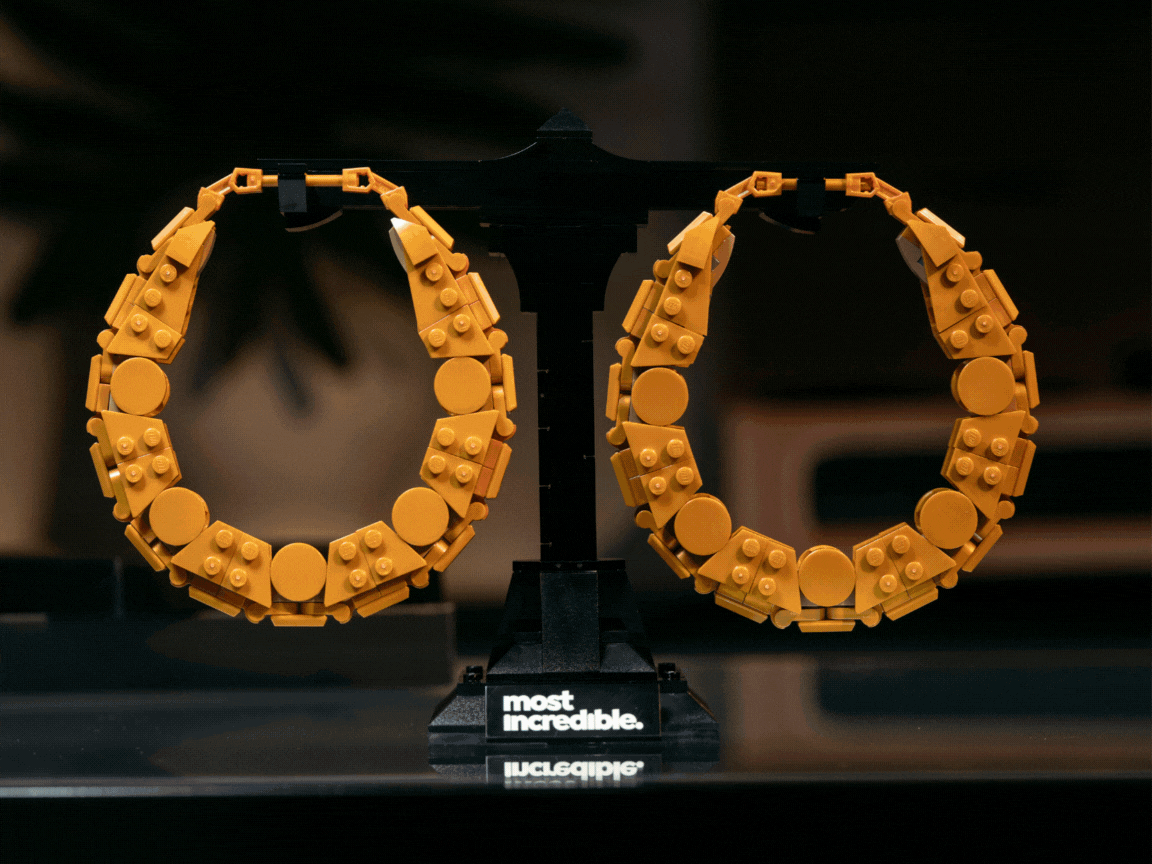 The BAMBOO is a cultural artifact using LEGO® bricks. A collectible that celebrates one of the most iconic symbols in hip-hop and womanhood, the bamboo earring.